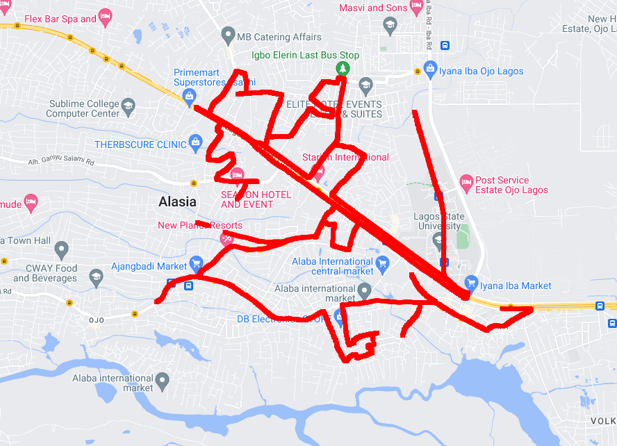 The drive test was conducted from 1:53 pm, 11th August to 6:06pm, 11th August, 2024; the image below is the evaluated route.