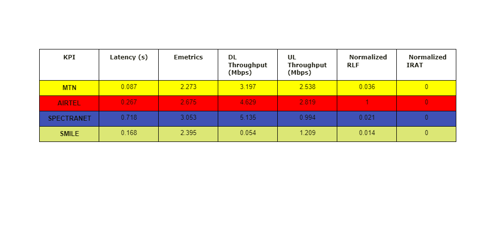We collect comprehensive RF Performance data on the Networks of Mobile Broadband Service Providers in Nigeria. The raw UE log is available to interested service providers for use in further improving the quality of their networks.