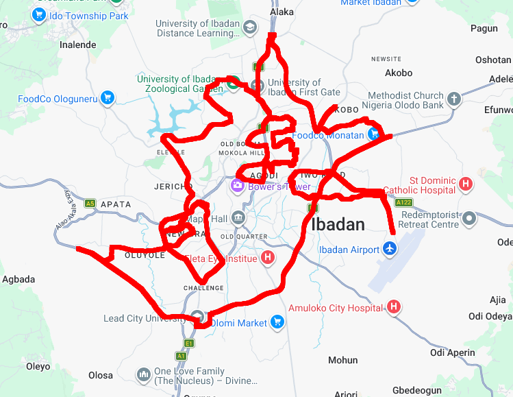 The drive test was conducted from 1:00 pm, 2nd March to 5:35 pm, 2nd March 2026; the image below is the evaluated route.