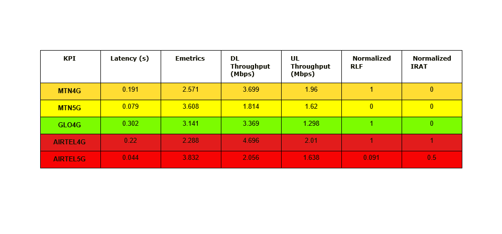 We collect comprehensive RF Performance data on the Networks of Mobile Broadband Service Providers in Nigeria. The raw UE log is available to interested service providers for use in further improving the quality of their networks.