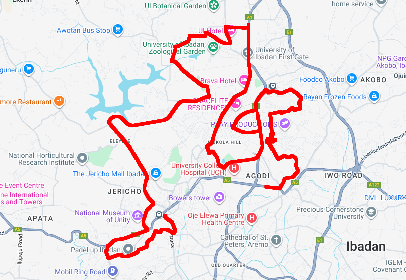 The drive test was conducted from 1:20 pm, 30th September to 3:05 pm, 30th September 2025; the image below is the evaluated route.