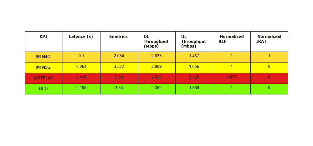 We collect comprehensive RF Performance data on the Networks of Mobile Broadband Service Providers in Nigeria. The raw UE log is available to interested service providers for use in further improving the quality of their networks.
