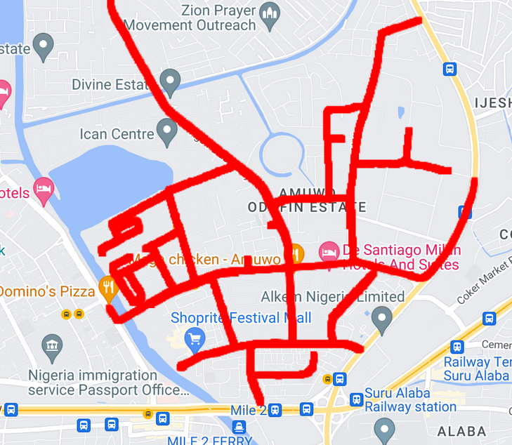 The drive test was conducted from 07:21am, 15th May to 2:02pm, 15th May, 2024; the image below is the evaluated route.
