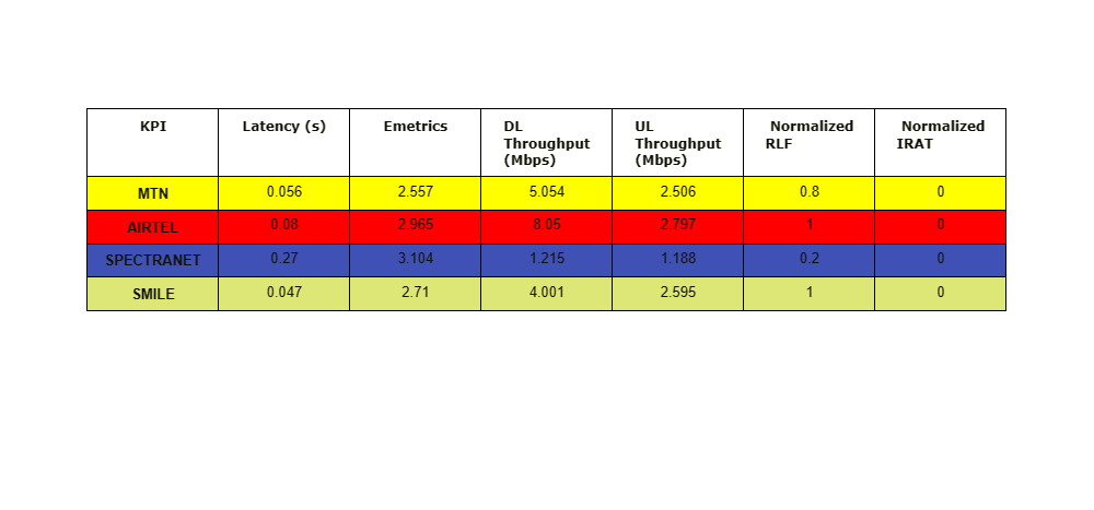 We collect comprehensive RF Performance data on the Networks of Mobile Broadband Service Providers in Nigeria. The raw UE log is available to interested service providers for use in further improving the quality of their networks.